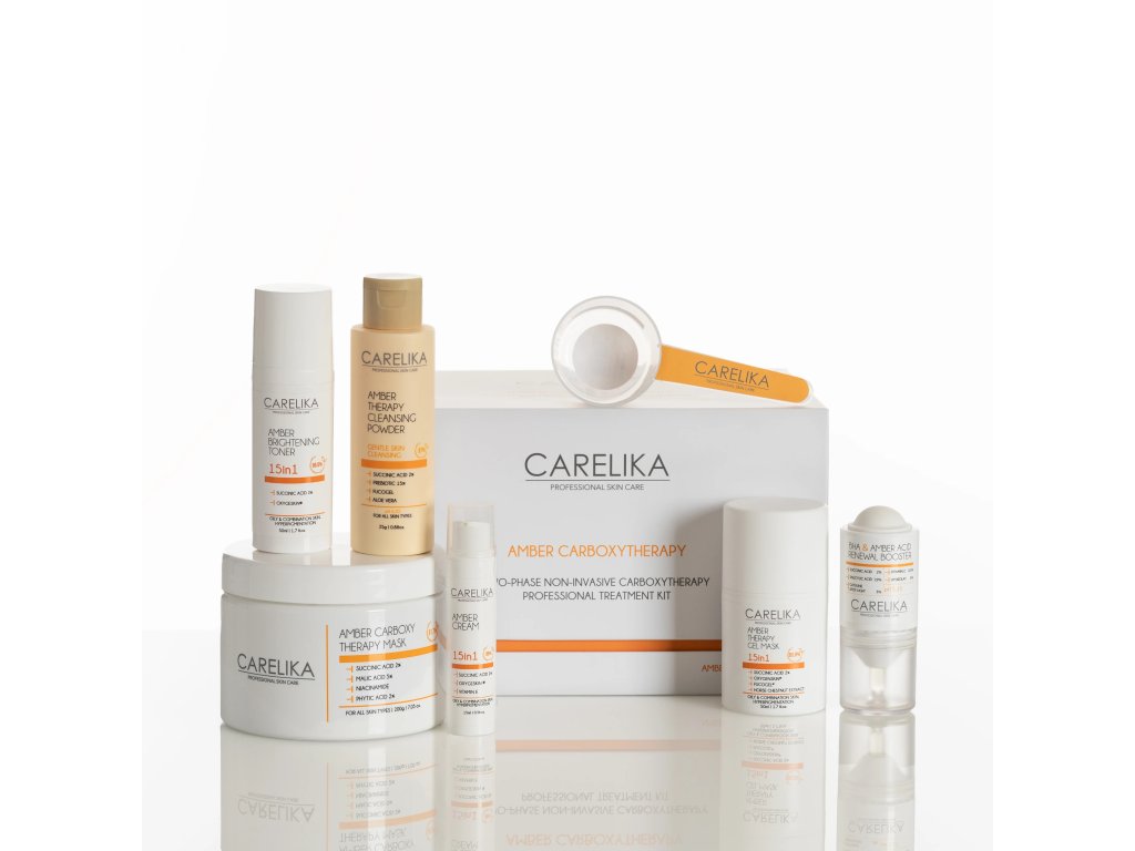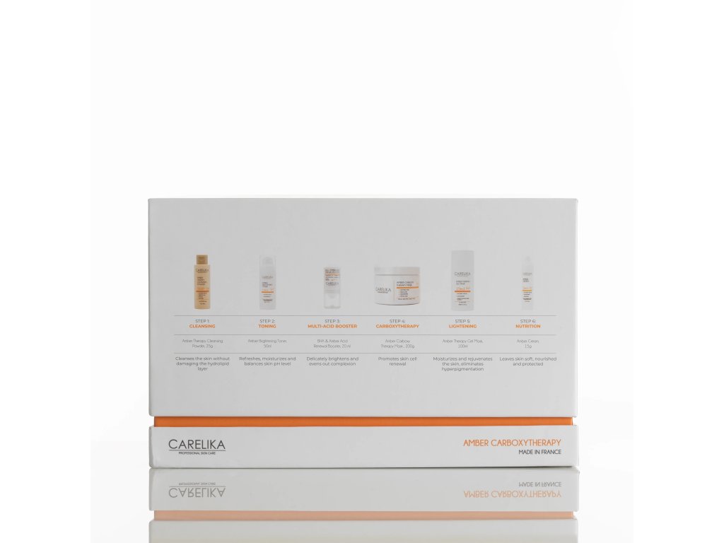 Sada CARELIKA Amber Carboxy Treatment Kit je pokročilý systém péče o pleť určený k omlazení, detoxikaci a okysličení pleti. Tato kúra kombinuje sílu BHA, kyseliny jantarové, niacinamidu a oxidu uhličitého a stimuluje buněčnou obnovu, zlepšuje mikrocirkulaci a čistí pleť. Inovativní dvoufázová péče podporuje pevnější a zářivější pleť minimalizací viditelnosti pórů, pigmentace a známek stárnutí a zároveň obnovuje hydrataci a rovnováhu. Tato péče je vhodná pro estetickou i profesionální péči o pleť a přináší okamžité i dlouhodobé výhody. Zanechává pleť revitalizovanou, svěží a zářivou.