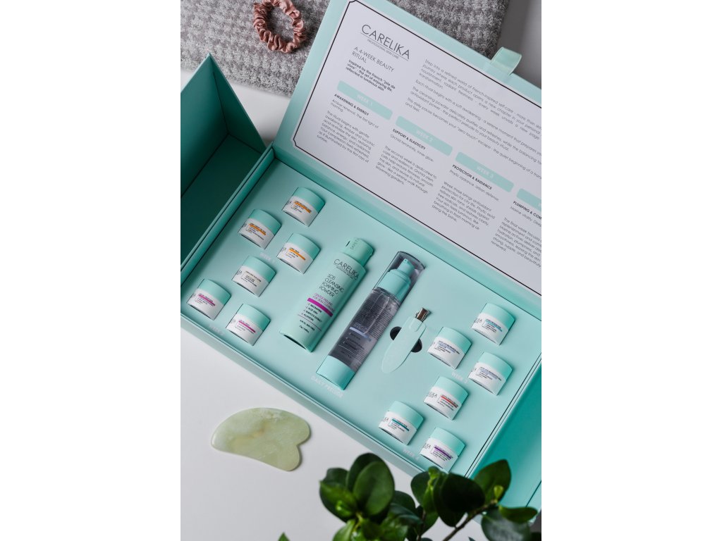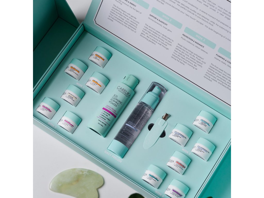 CARELIKA 4týdenní profesionální rituál je komplexní systém péče o pleť navržený pro hloubkovou obnovu, rovnováhu a ochranu pokožky. Tento strukturovaný program kombinuje každodenní čištění s týdenními cílenými kúrami, které postupně transformují unavenou pleť v rozzářenou a vitální tvář.