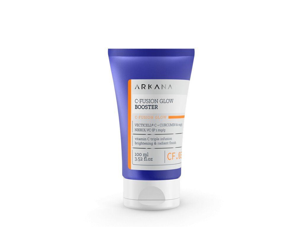 C-Fusion Glow Booster je vysoce koncentrovaný booster s vysokou dávkou stabilního vitamínu C (3 formy s postupným uvolňováním) a kurkuminu navržený tak, aby pleti dodal okamžitý „glow“ efekt. Funguje jako podpora a zvyšovač účinků omlazujících, rozjasňujících a sjednocujících ošetření.