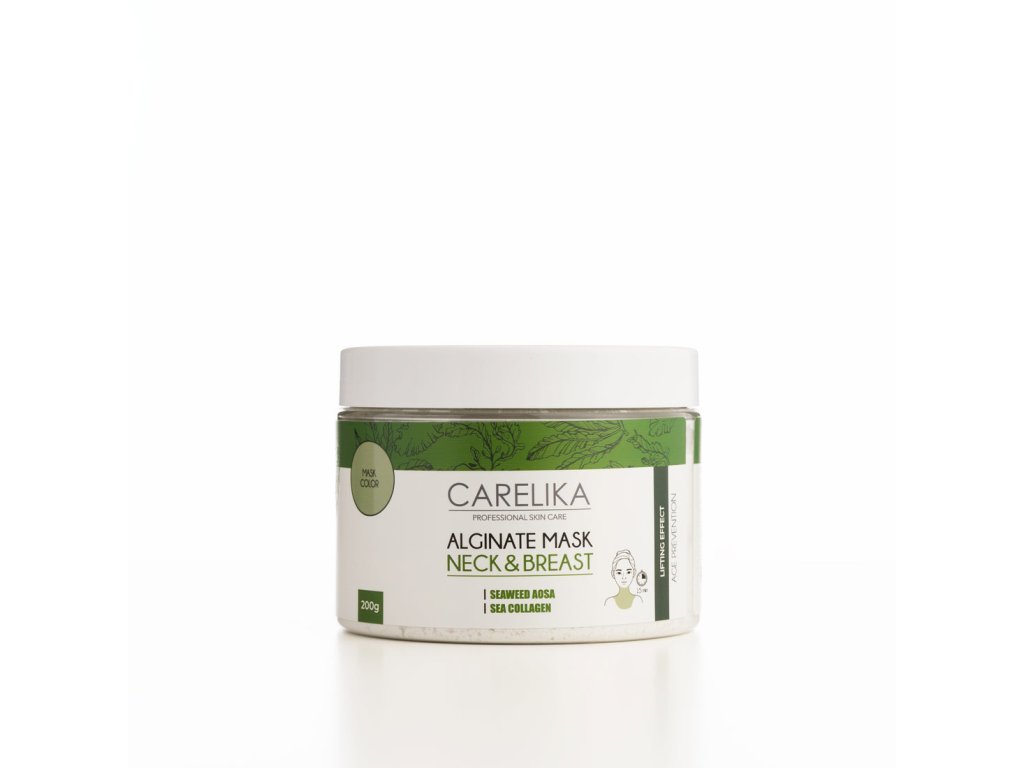 Alginátová maska na krk a dekolt s liftingovým účinkem viditelně zvedá a vyhlazuje pokožku. Jako přírodní alternativa lipofillingu je tato maska obohacena o výtažek z AOSA, který má schopnost redukovat hloubku vrásek a stimulovat syntézu kolagenu a elastinu. Vyživující vlastnosti mořského kolagenu posílí zpevňující účinek pro mladistvější vzhled pleti. Hloubková výživa chrání buňky před škodlivými účinky volných radikálů v prostředí. Mořský kolagen omlazuje a doplňuje hladinu vlhkosti v pleti, tonizuje, zpevňuje pleť a tím zmenšuje jemné vrásky i další známky stárnutí včetně pigmentace. Alginát intenzivně vyživuje kožní tkáň, zvyšuje její schopnost regenerace a navrací jí mládí a krásu.