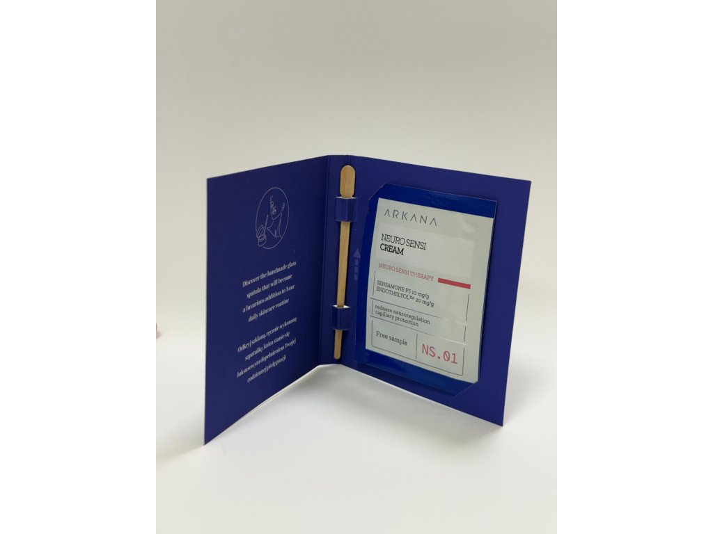 Papírový obal se skleněnou lžičkou pro vložení vzorku ARKANA.
